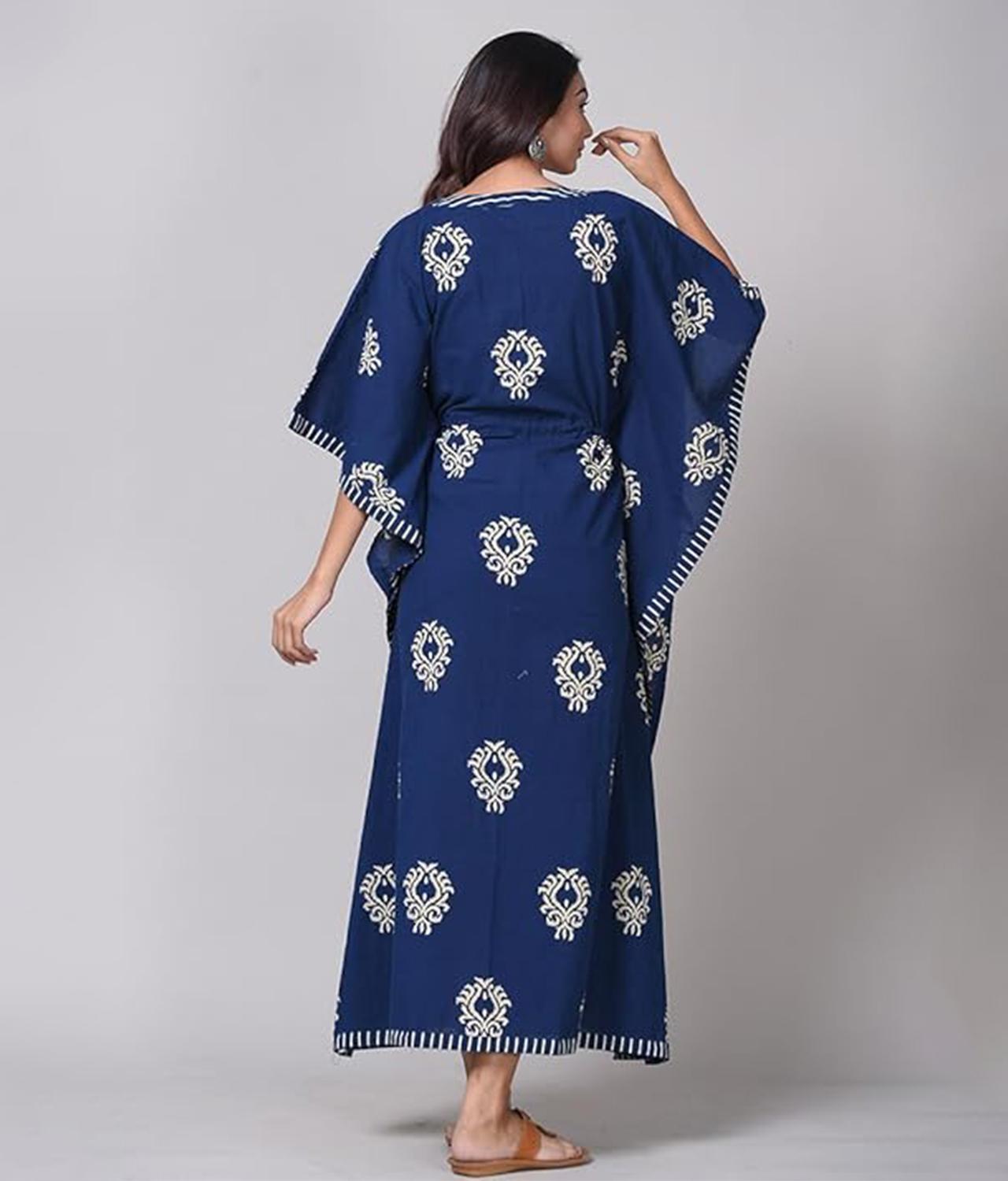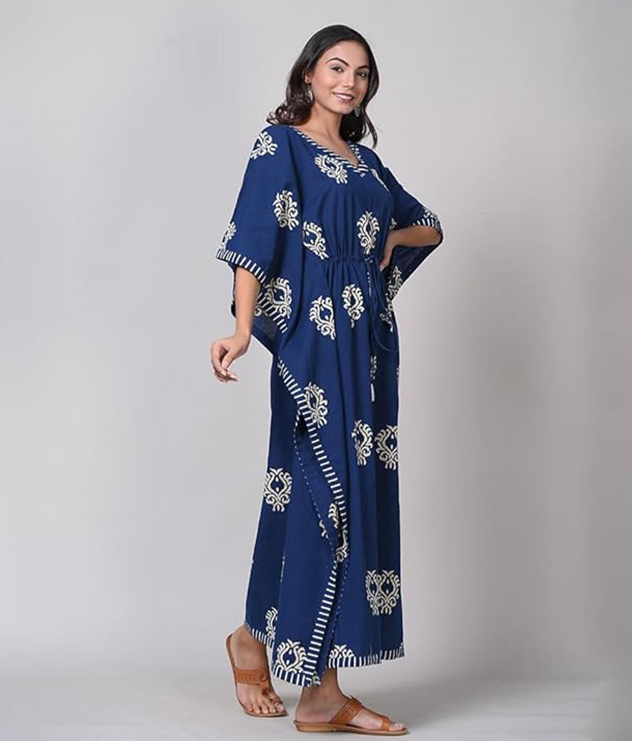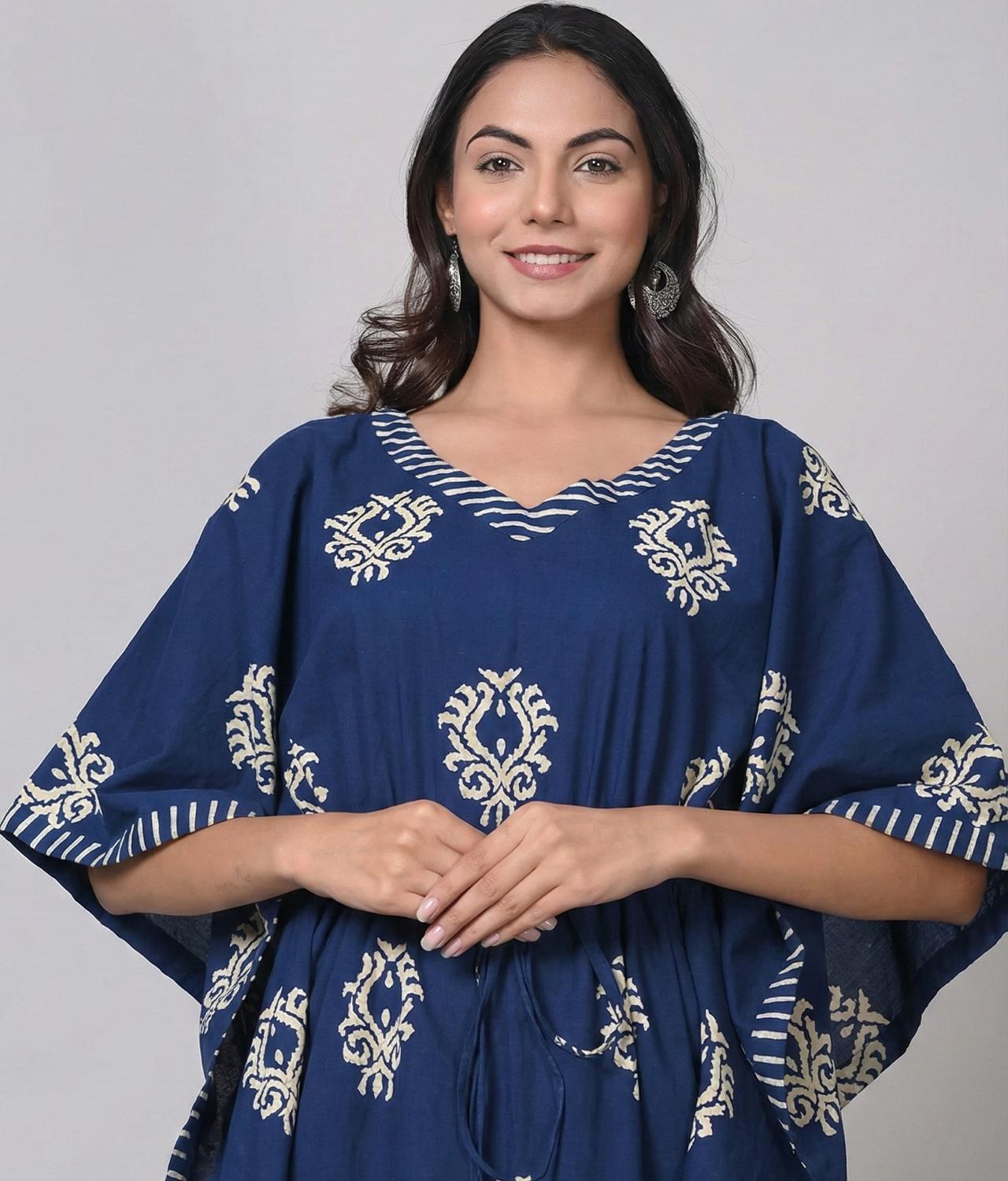 / Indigo Blue Jaipuri Printed Maternity Cotton Kaftan